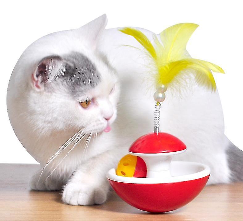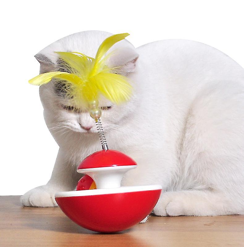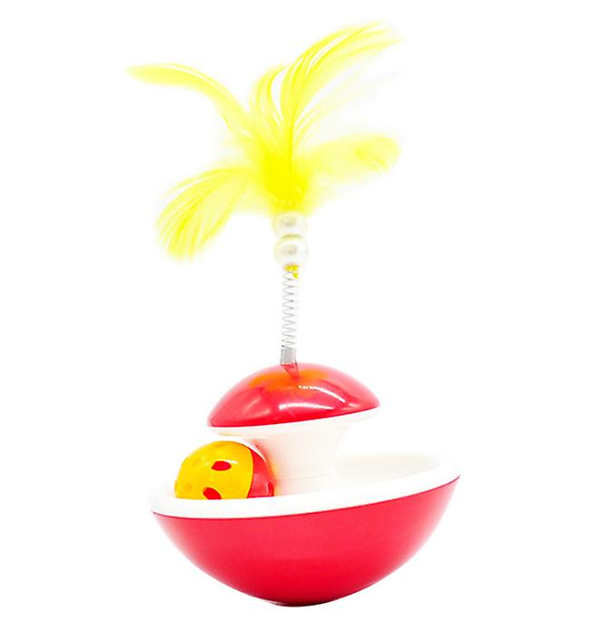 red Cat Tumbler Toy ,Feather Rotating Ball Bell Sound Interactive Toy For Kitty Kitten AZ16689