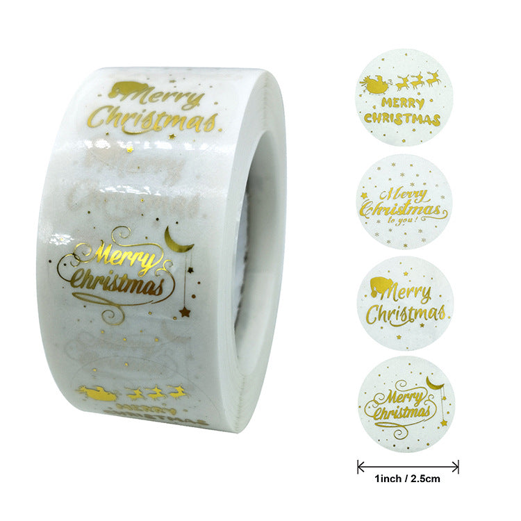 3x500pcs Xmas Christmas Stickers Roll Label 3 Designs Transparent Bronzing Merry Gift