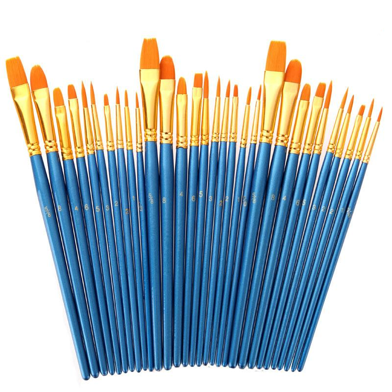 30 Nylon Hair Glitter Black Rod Watercolor Brushes