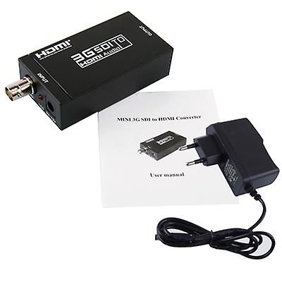 The MINI SDI to HDMI converter allows SD-SDI, HD-SDI and 3G-SDI signals to be shown on HDMI/SDI displayswhile ensuring high bit rates of 2.970 Gbit/s to give you fast signal transmission without any loss. Forprofessionals this means that it is now easier to distribute and extend your 3G SDI signal while giving you theability to display your work on HDMI displays thanks to the built in HDMI converterFeatures:Operation at 2.970Gbit/s, 2.970/1.001Gbit/s, 1.485Gbit/s, 1.485/1.001Gbit/s and 270Mbits/sSupports SMPTE 425M (Level A and Level B), SMPTE 424M, SMPTE 292M, SMPTE 259M-CEqualized and re-clocked loop output? Integrated audio de-embedder for a maximum of 8 channel, 48 kHz audioConversion from SMPTE 425M level B to Level A 1080p 50/59.94/60 4:2:2 10-bitConnect with other units to extend your signal over long distancesSpecificaitonsInput Port: 1 x BNC (SDI/HD-SDI/3G-SDI)Output Port: 1 x HDMI,SMPTE Standard: 425M Level A & B, 424M, 292M, 259M-CSDI Transmission Rates: 2.970 Gbit/s and 2.970/1.001 Gbit/sIn/Output Resolution: 480i, 576i, 720p@50/59.94,60 , 1080i@50/59.94/60, 1080p@23.98/24/25/29.97/30/50/59.94/60,1080PsF@23.98/24/25/29.97/30Weight: 205gSize: 100(W) x65(D) x 25(H) mmPackage Content:1 x MINI 3G HD SDI 1080P to HDMI Converter Adaptor (002-02040007BK /E4)1 x AC Adaptor1 x User manual