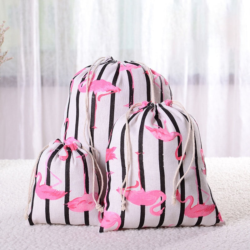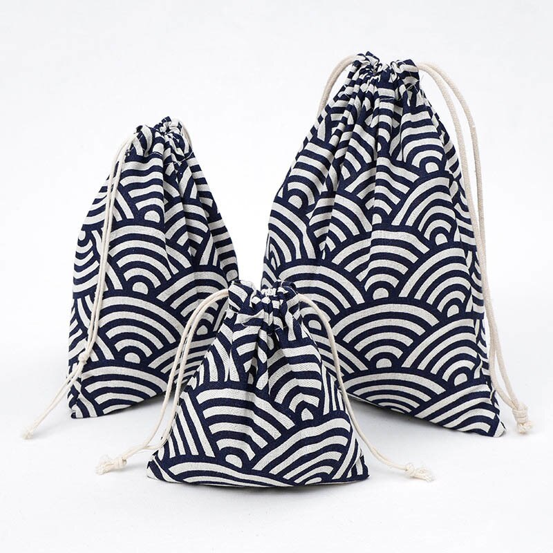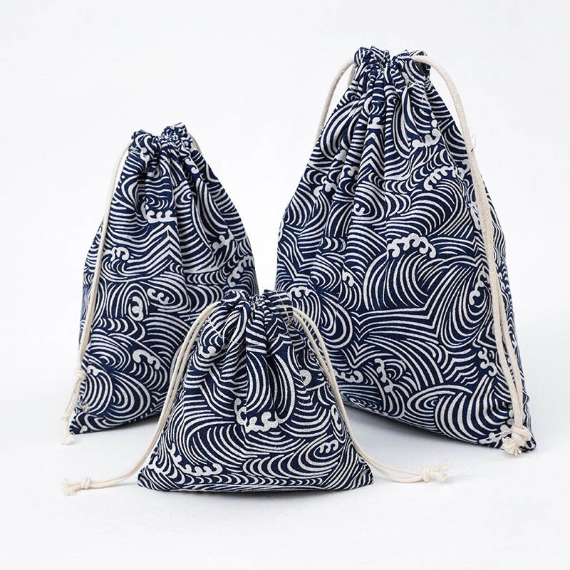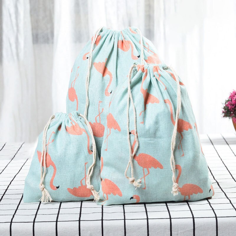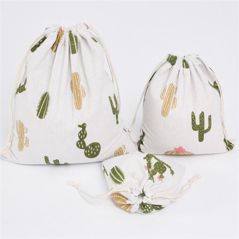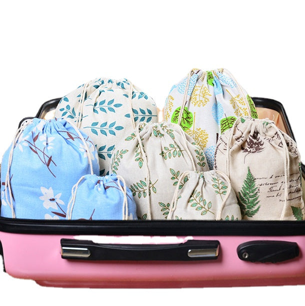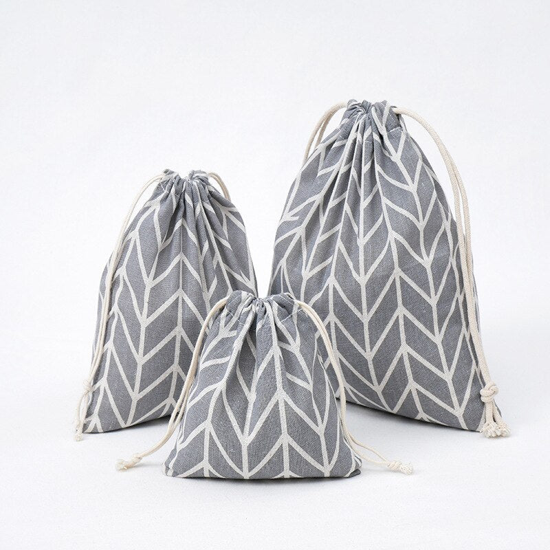3-Piece Set Travel Travel Drawstring Cotton Storage Bag, White with Green Leaves