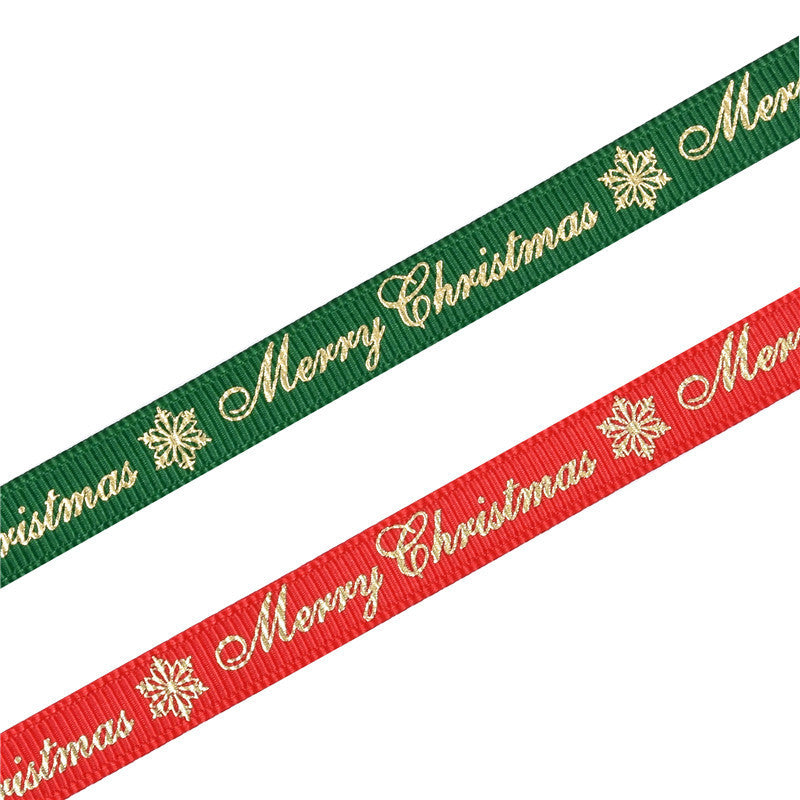 2pcs Christmas Packing Materials 1cm Wide Bronzing Printed Letters Ribbed Band Flowers Gift Packaging
