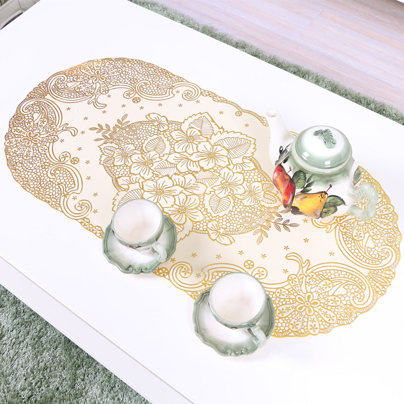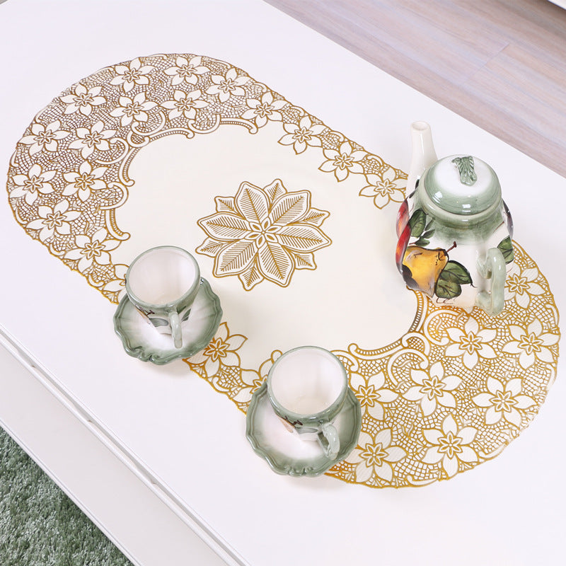 2pcs Christmas Tablecloths Golden of European Style Flower Oval Tea Table Cloth 40 * 84cm