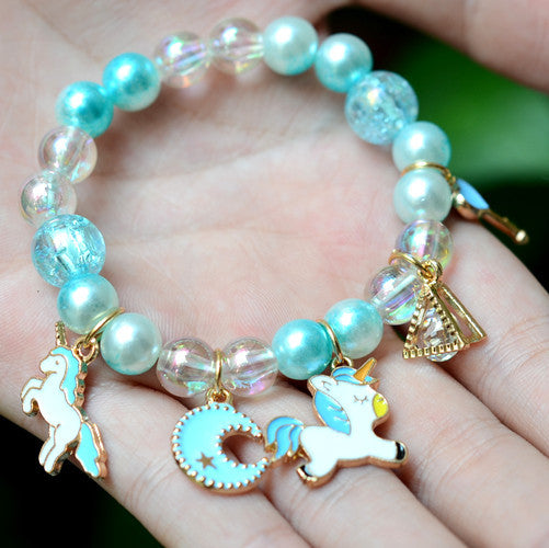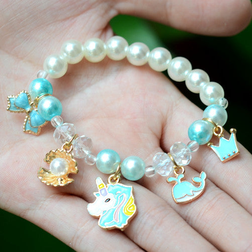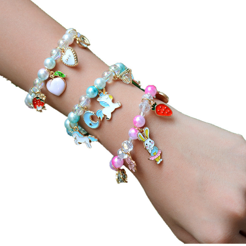 2Pc Rainbow Beaded Children's Bracelet Cute Dripping Oil Alloy Christmas Children's Day Gifts for Girls