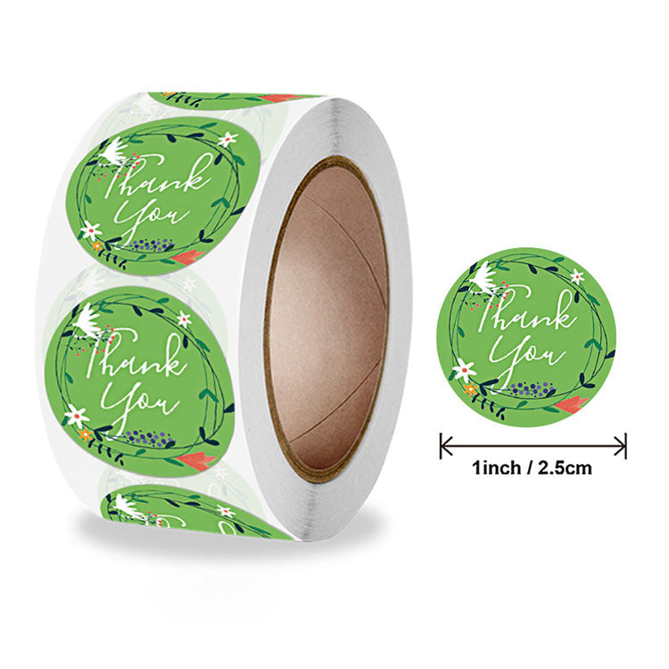 2x500pcs Xmas Christmas  Stickers Roll Label Grass Green Floral Ring Thank You Envelope Gift
