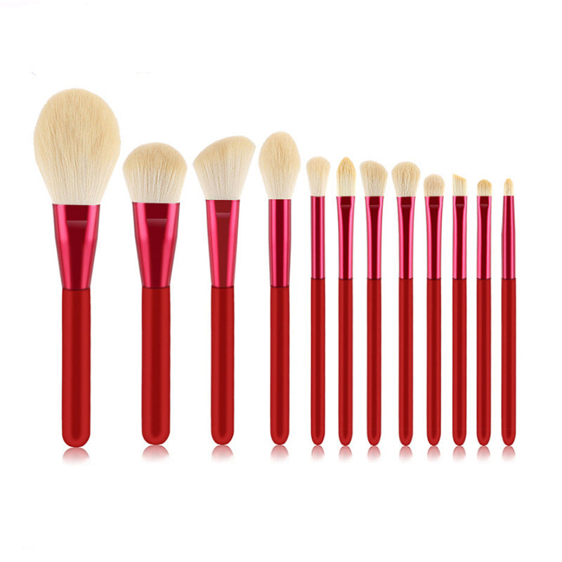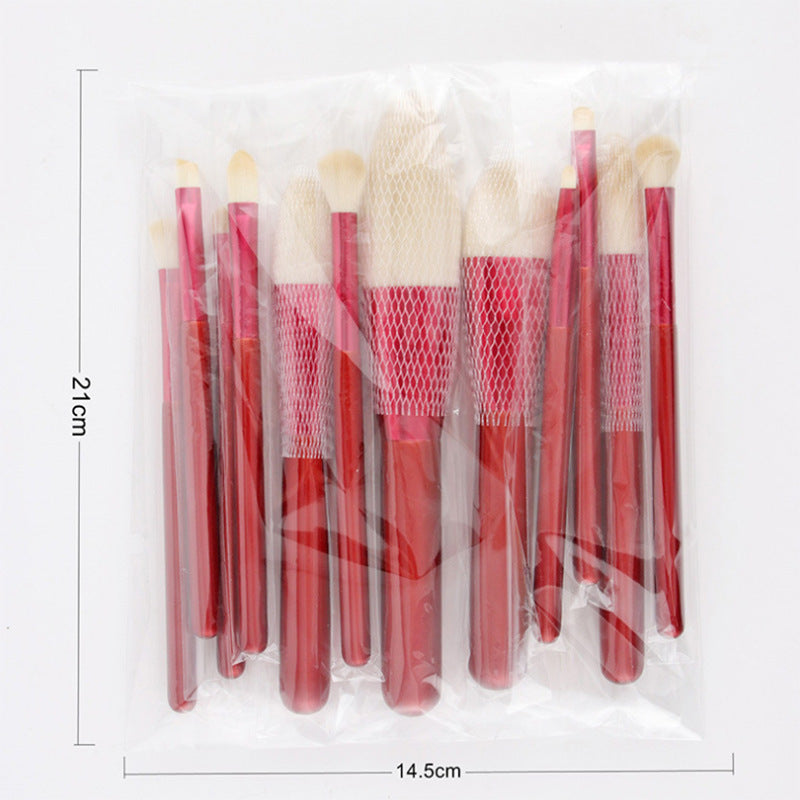 12 Red Wooden Handle Makeup Brushes Face Powder Beauty Makeup Tools