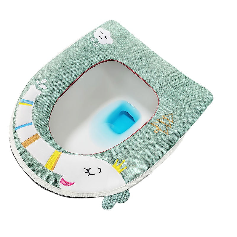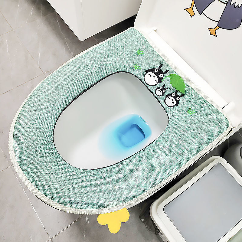 3pcs Toilet Seat Cover Pads Linen   Summer Four Seasons Cartoon Elephant   Breathable Zipper