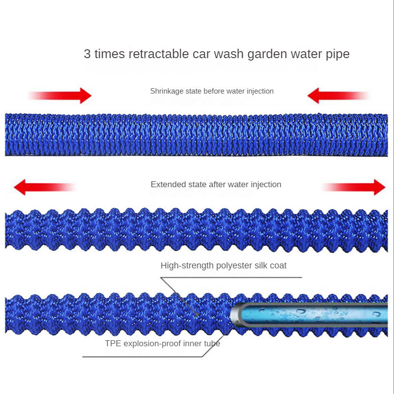 Lightweight and Flexible Design: Elastomeric hoses are easier to handle and lighter in weight than traditional hoses. When the water is turned on, the water pressure of the hose quickly expands to 3 times, and it only takes a few minutes to restore the original length when draining.