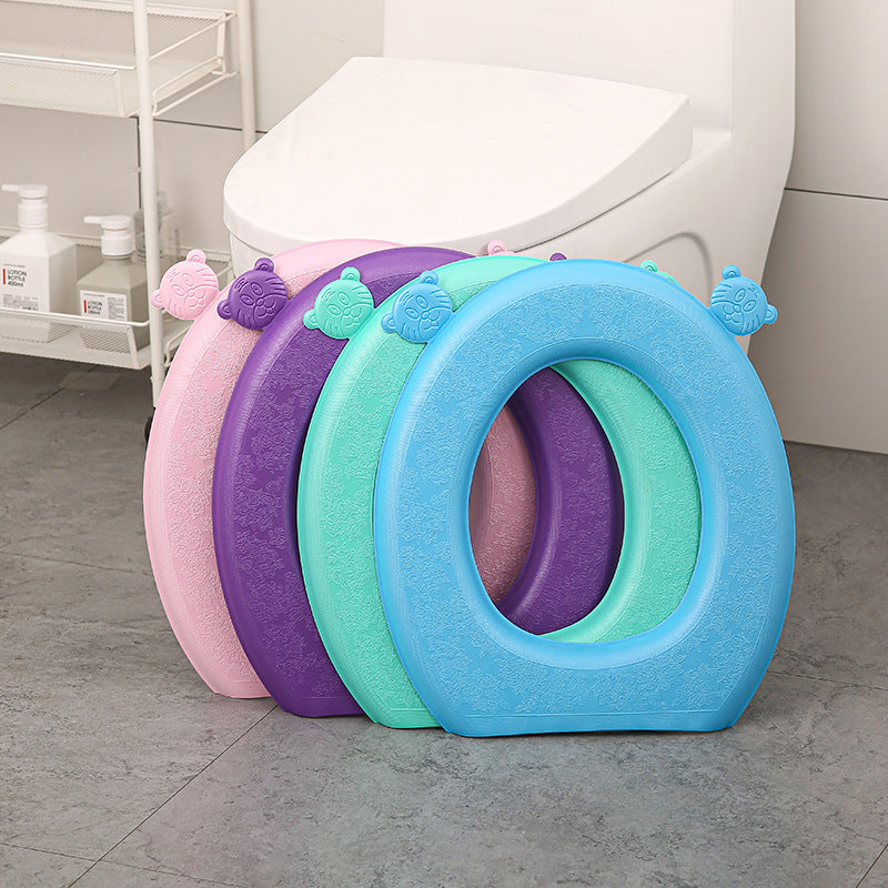 Easy to install: place cover with ring facing underside of toilet seat, pull cover through the hole, then stretch cover over toilet seat.