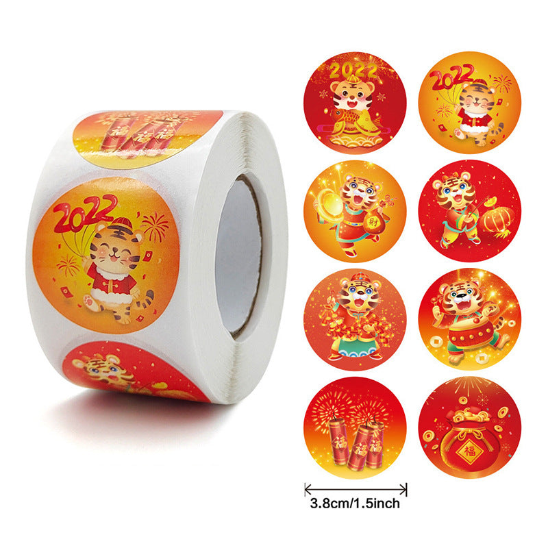 2x500pcs Christmas Xmas New Year Tiger Fu Character Candy Gift Decorative Sticker Label tape