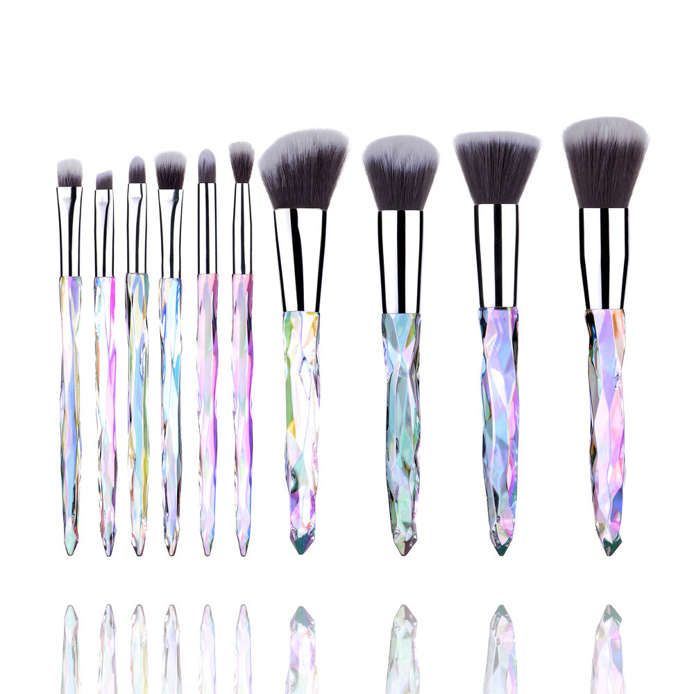10 PCs Diamond Makeup Brushes Crystal Diamond Handle Glass Stem Makeup Brushes