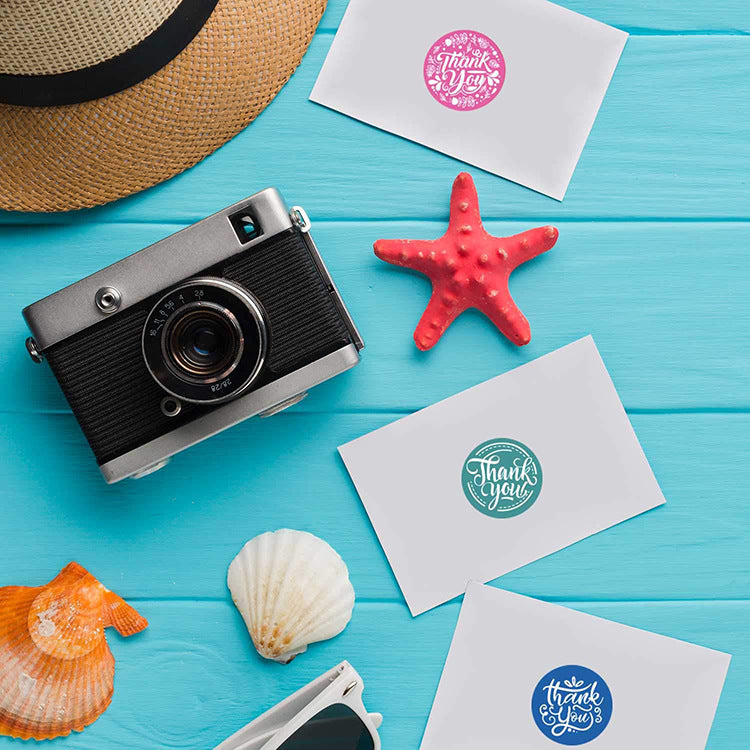 2x500pcs Christmas Xmas Pink Blue Small Floral Ring Thank You Envelope Gift Packing Bag Sticker Label tape