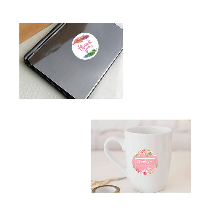 2x500pcs Xmas Christmas  Stickers Roll Label Pink Floral Thank You Notebook Tea Cup Gift Decoration