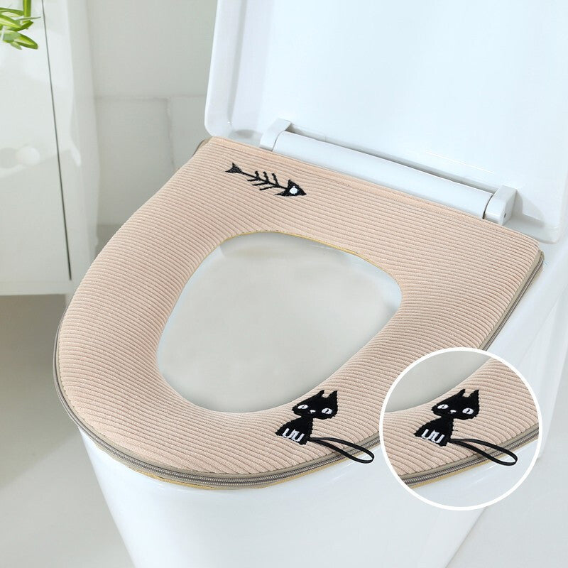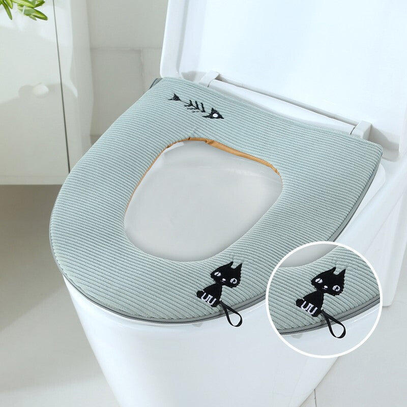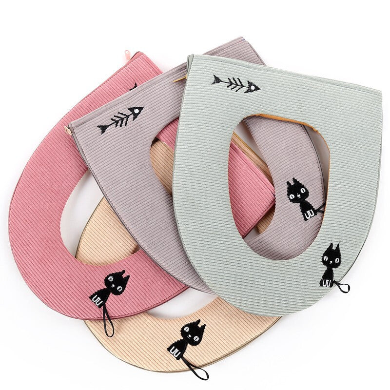 3pcs Toilet Seat Cover Pads Portable Household Thicker Warm Zipper Cartoon