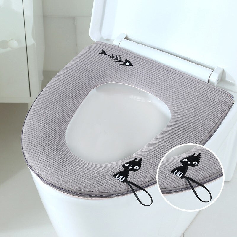 3pcs Toilet Seat Cover Pads Portable   Household Thicker Warm       Zipper Cartoon