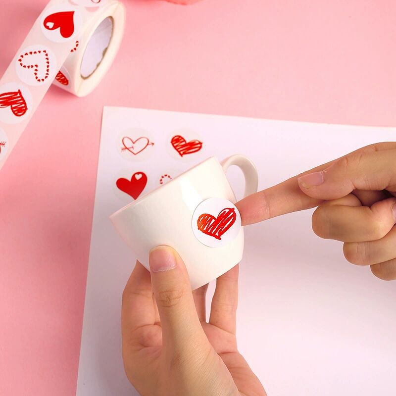 2x500pcs Christmas Xmas Reel-up Heart-Shaped Skin-Sticking Valentine's Day Gift Stickers tape