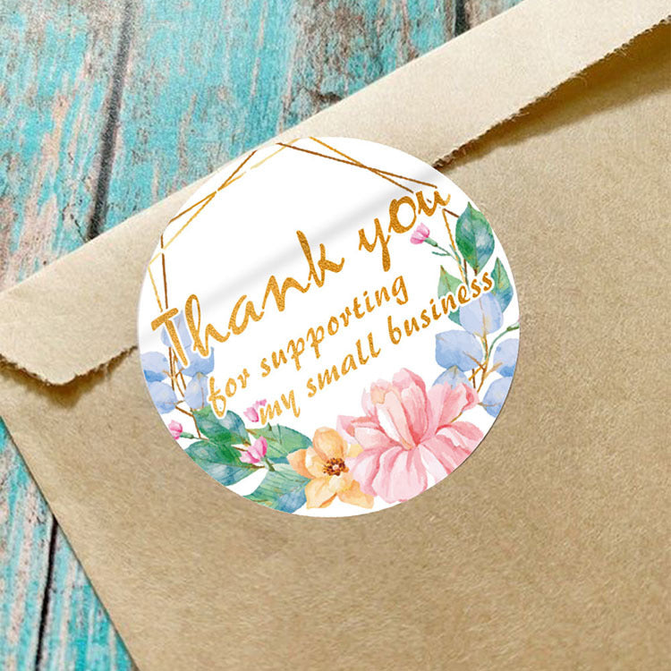 Roll-up bronzing THANK YOU FOR BUSINESS THANK YOU gift flower sealed sticker label