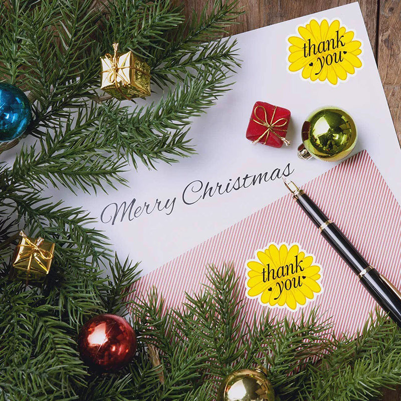 2x500pcs Christmas Xmas Roll-up Special-Shaped Yellow Daisy Petals Thank You Sticker Self-Adhesive Gift Label tape
