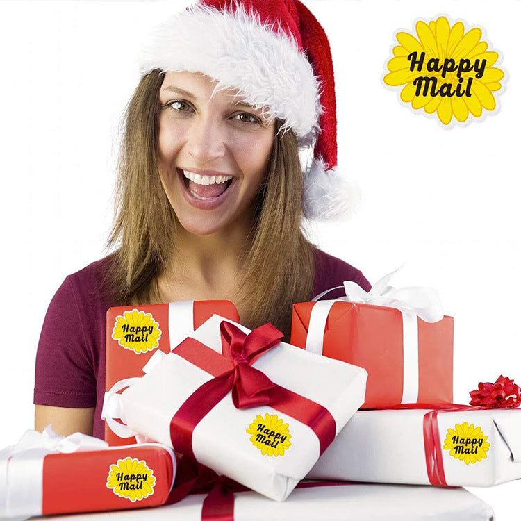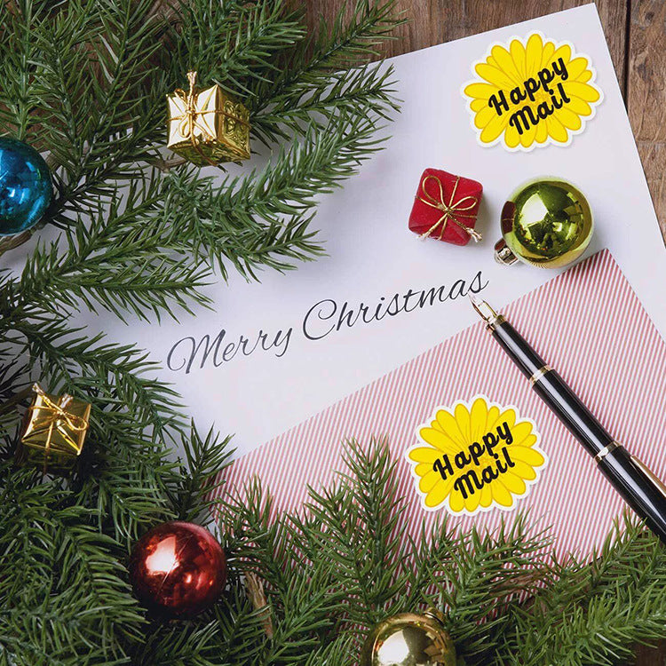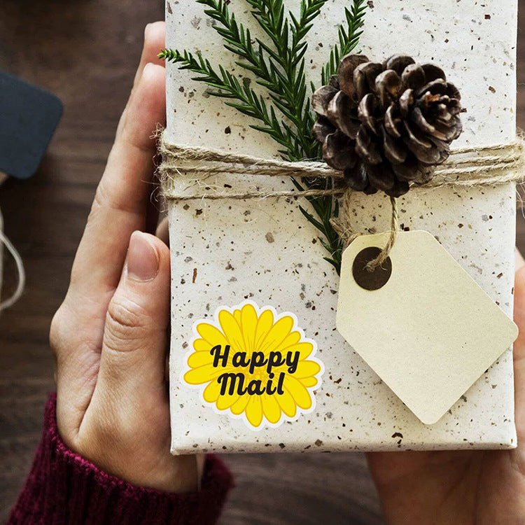 Roll-up special-shaped yellow petal HAPPY MAIL sticker self-adhesive gift label