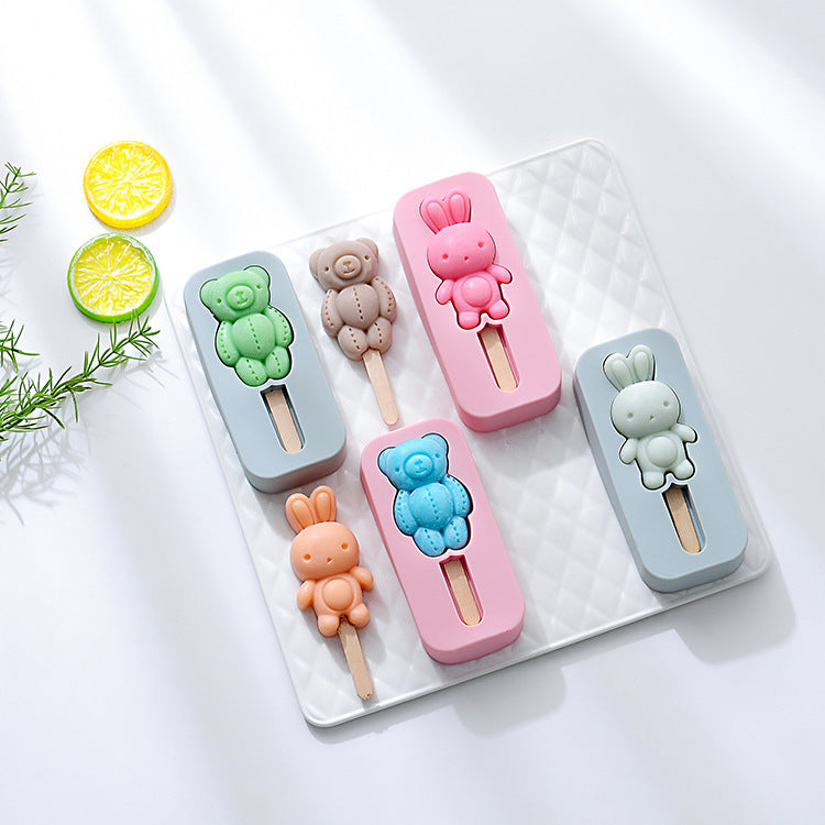 2PC Silicone Mold Rabbit Bear Shape Silicone Mold Ice Tray Ice Cream Stick Mold