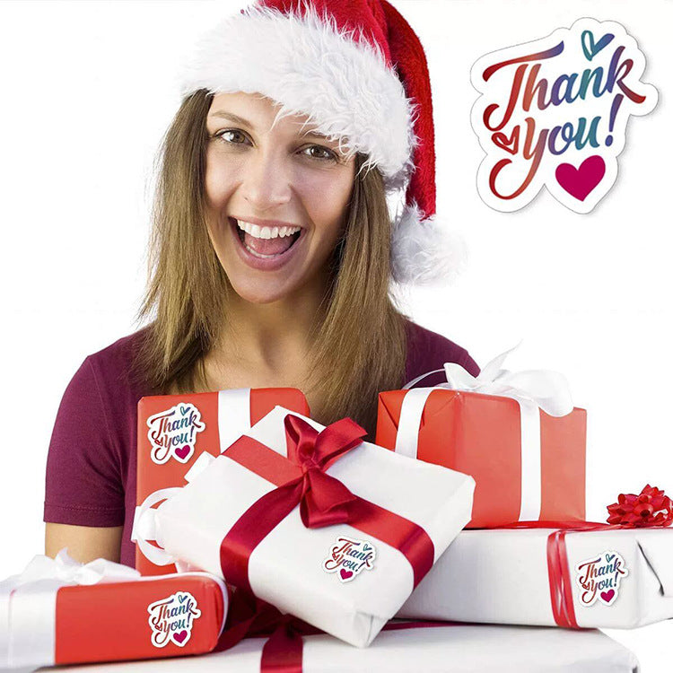 Shaped Red Green heart THANK YOU THANK YOU sticker adhesive self-adhesive labels
