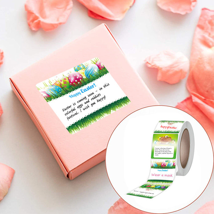 Square green grass egg HAPPY EASTER Day gift decoration label sticker