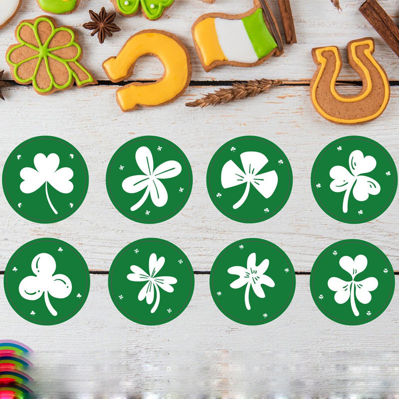 2x500pcs Christmas Xmas St. Patrick's Day Irish Four-Leaf Clover Bouquet Envelope Gift Sticker tape