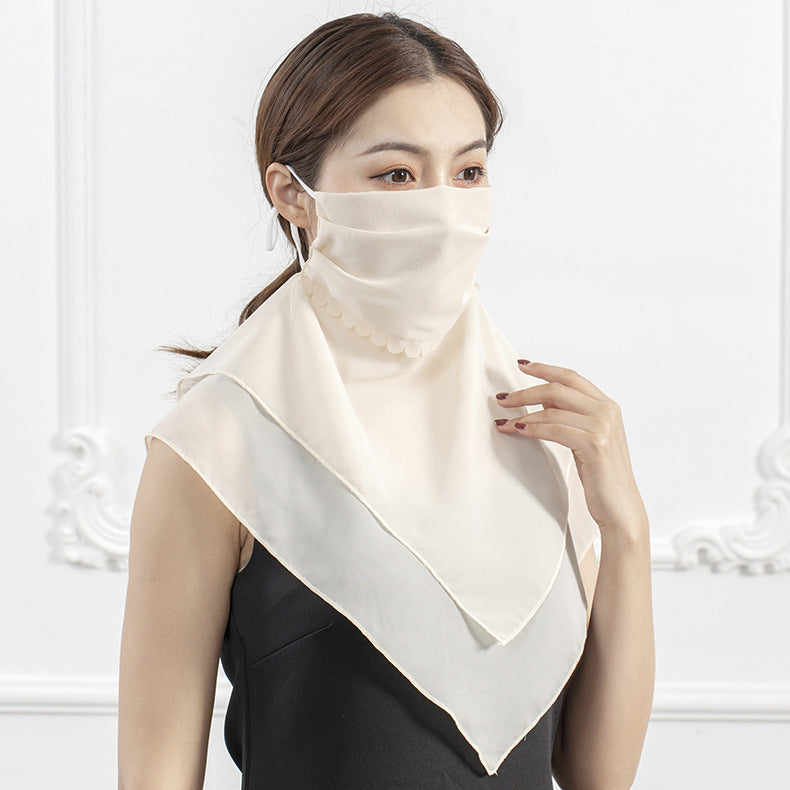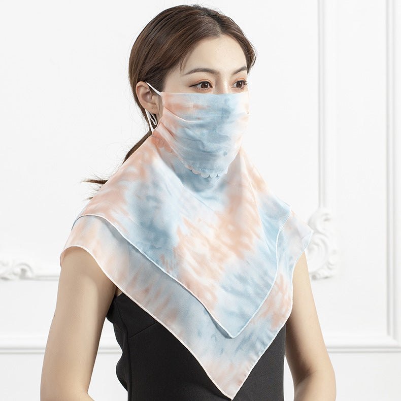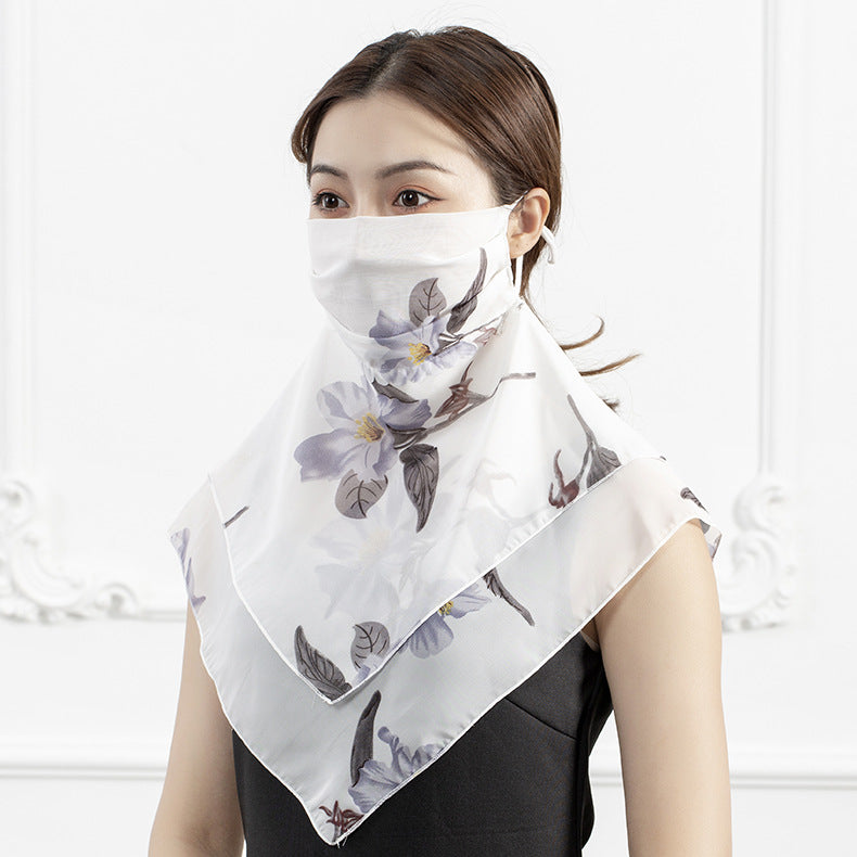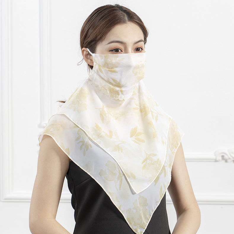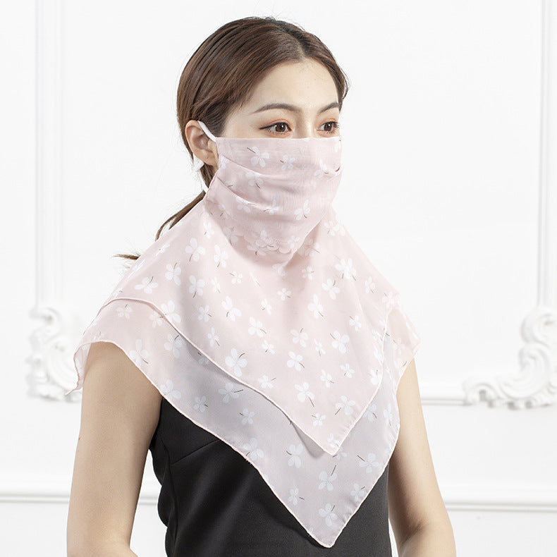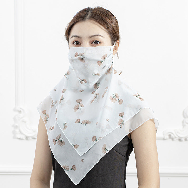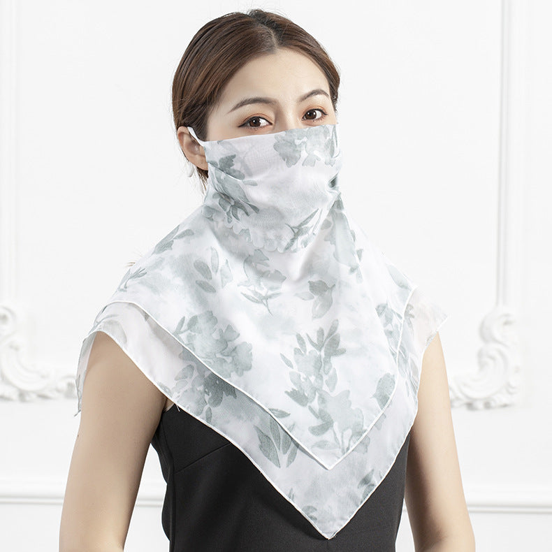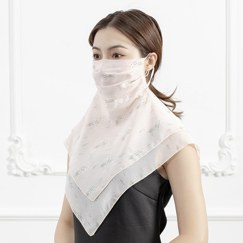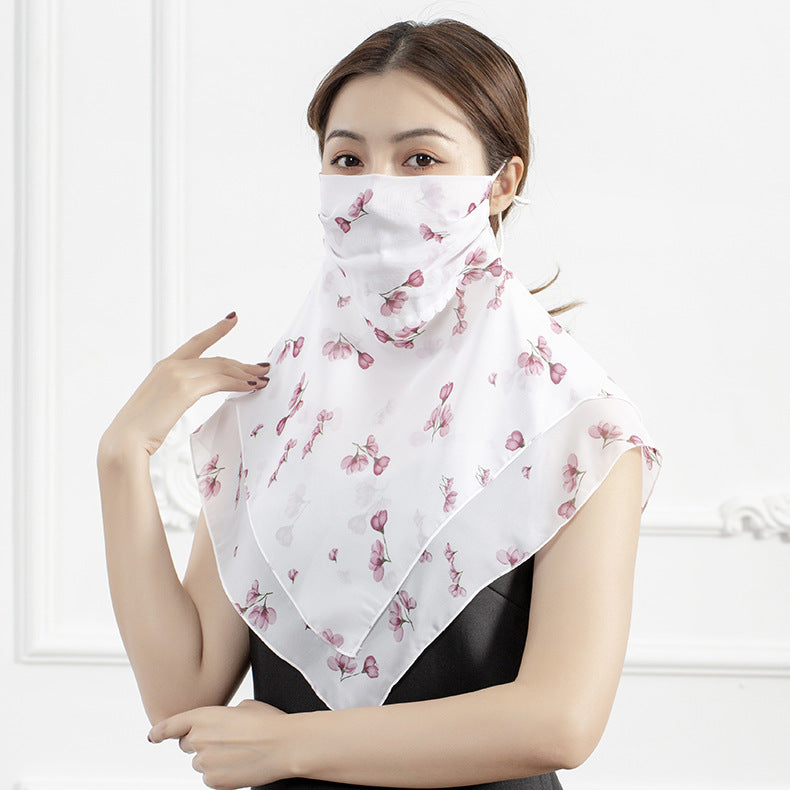 2PCs Chiffon Shawl Ear-Hanging Sunscreen Veil Summer Face Mask for Outdoor Cycling
