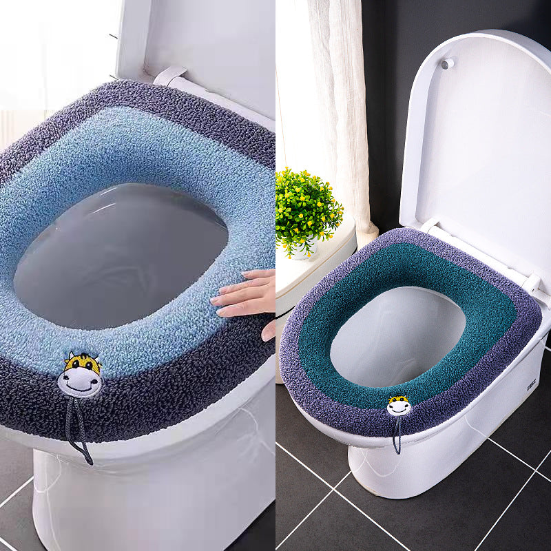 3pcs Toilet Seat Cover Pads Autumn and Winter Zipper Winter Thicker      Ring