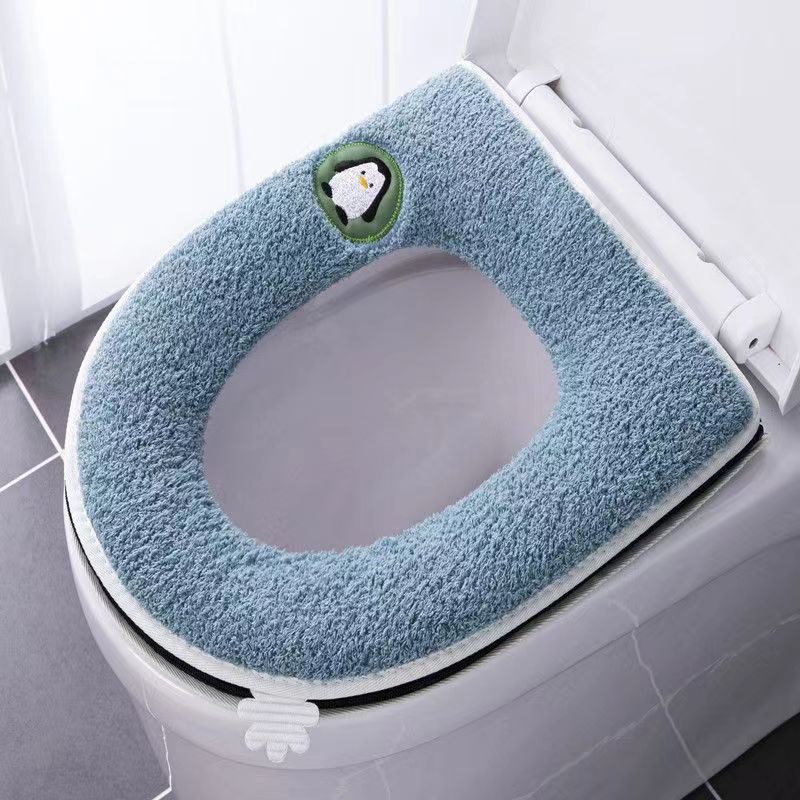 3pcs Toilet Seat Cover Pads Washer Pedestal Ring Waterproof Thicker Cute Zipper