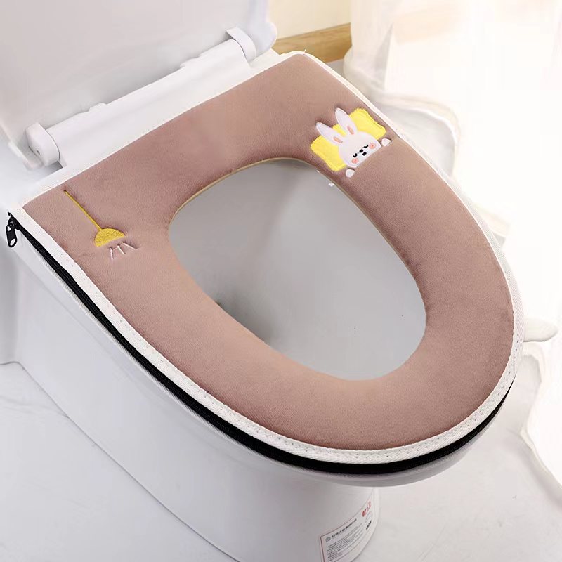 3pcs Toilet Seat Household Plush Thickened Zipper Four Seasons  Waterproof Cute Toilet Seat Cover