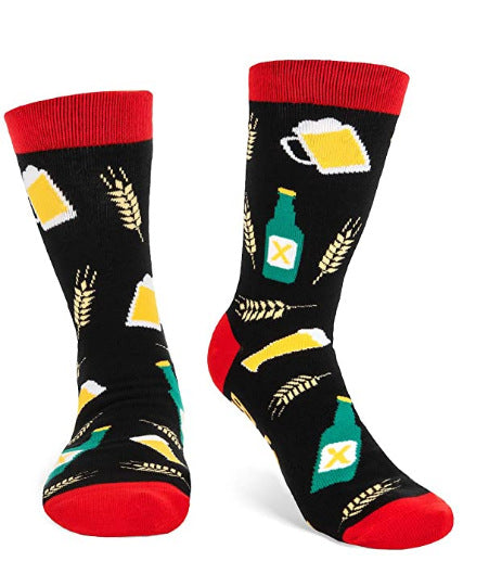 3 Pairs Trendy Printed Adult Men's and Women's Socks Beer Dispensing Yellow Middle Tube