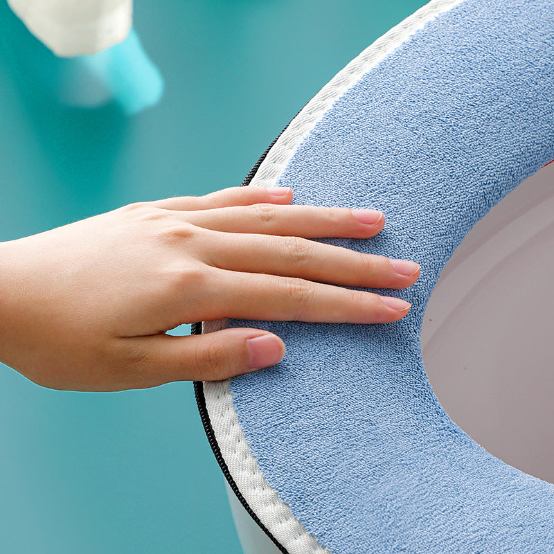 Easy to install: place cover with ring facing underside of toilet seat, pull cover through the hole, then stretch cover over toilet seat.